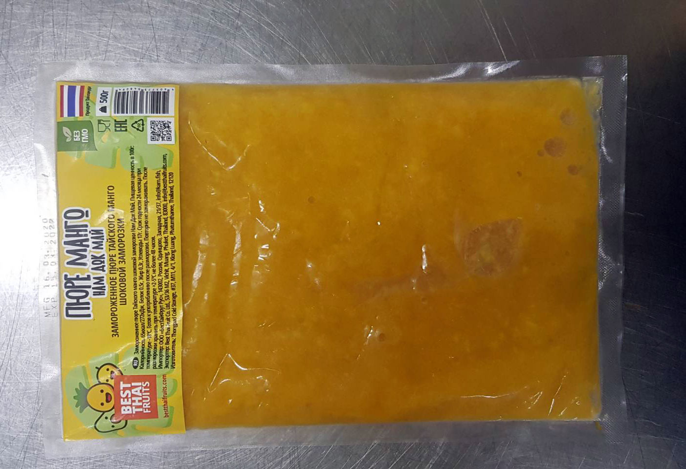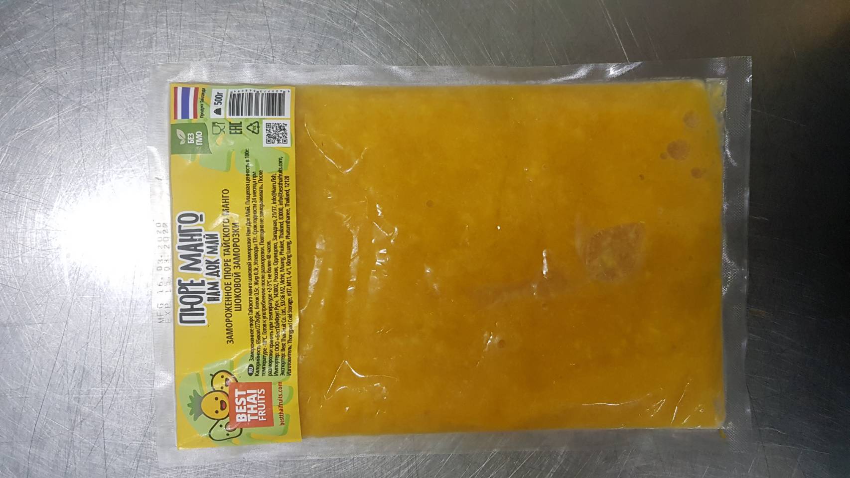 Мякоть спелых плодов манго, очищенных от кожуры и косточки, замороженная методом Индивидуальной Шоковой Заморозки IQF (Individual Quick Freezing). Готова к употреблению после вскрытия или оттаивания.